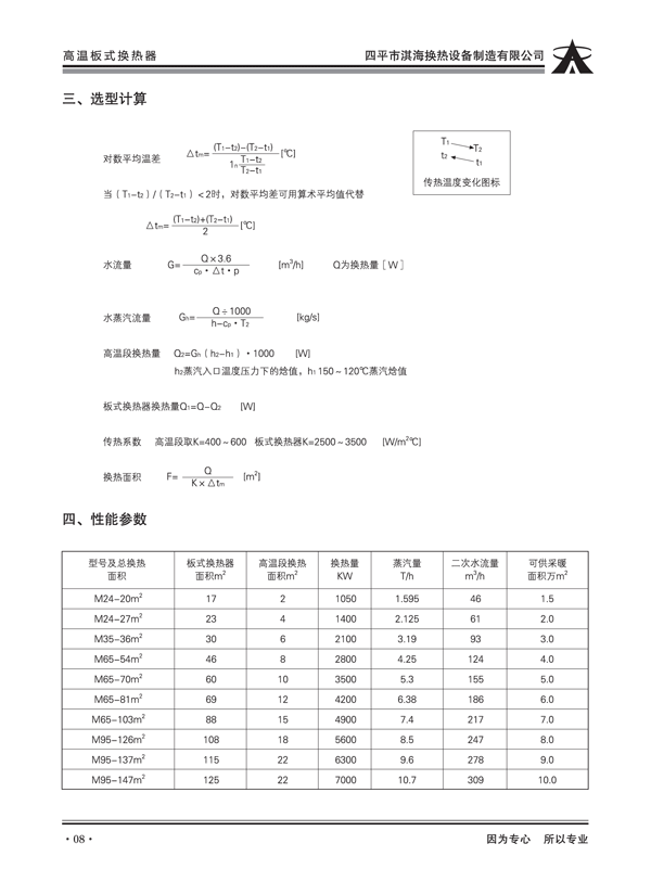 高溫板式換熱器采用兩級(jí)換熱的方法,即熱介質(zhì)先進(jìn)入高溫?fù)Q熱裝置,溫度降低至150-120℃以下后進(jìn)入板式換熱器。冷介質(zhì)先進(jìn)入板式換熱器,再經(jīng)過(guò)連接管進(jìn)入高溫段換熱。冷熱介質(zhì)在高溫板式換熱器的每一級(jí)都是逆流換熱,因此換熱充分,熱損失小。